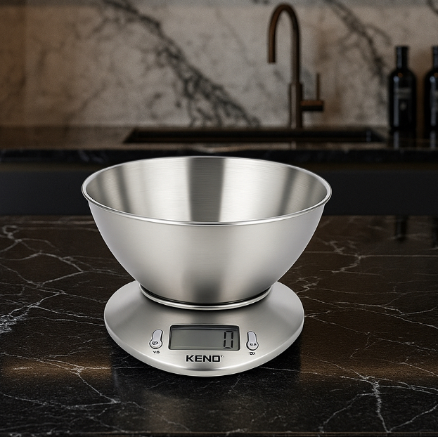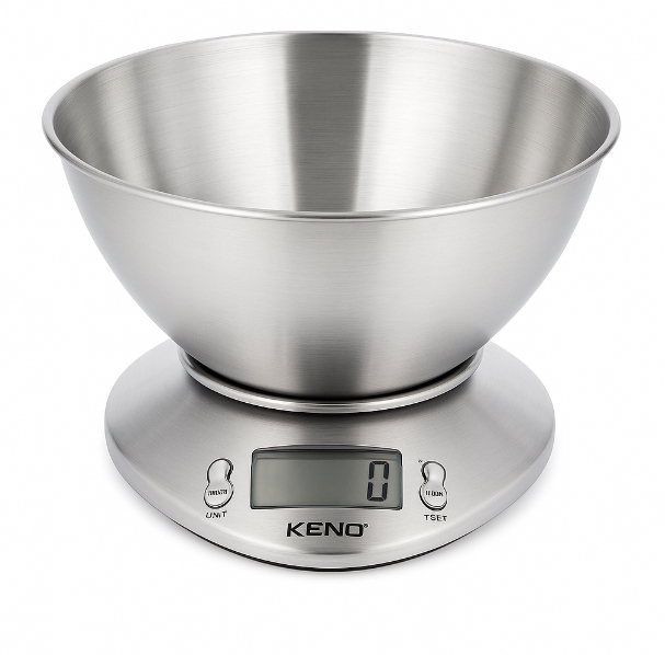 Ova kuhinjska vaga je izuzetno velike preciznosti merenja, sa mogućnosti merenja čak i tečnosti. Ima posebno odvojivu metalnu posudu od nerđajućeg visokopoliranog čelika, kao i dodatnu plastičnu posudu za merenje, koja se mogu skinuti sa vage. Kapacitet merenja je do 5 kilograma, pouzdana je i vrlo precizna.