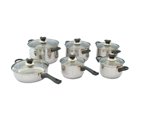 U kompletu se nalazi 5 posuda različitih veličina i jedan tiganj. Svaka posuda ima svoj poklopac, ukupno 12 delova.