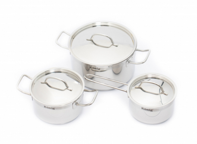 Fantastičan komplet kuhinjskog posuđa u setu od 3 posude za kuvanje različitih veličina. Sve posude su sa odgovarajućim metalnim poklopcima.