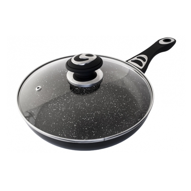 Kvalitetan aluminijumski tiganj sa dubokim dnom presvučen slojevima granita i staklenim poklopcem prečnika 28 cm. Pripada specijalnoj liniji proizvoda koji su pravljeni od ojačanog aluminijuma povećanog preseka sa višeslojnim granitnim premazom, koji je otporan na habanje, oštećenja i grebanje.